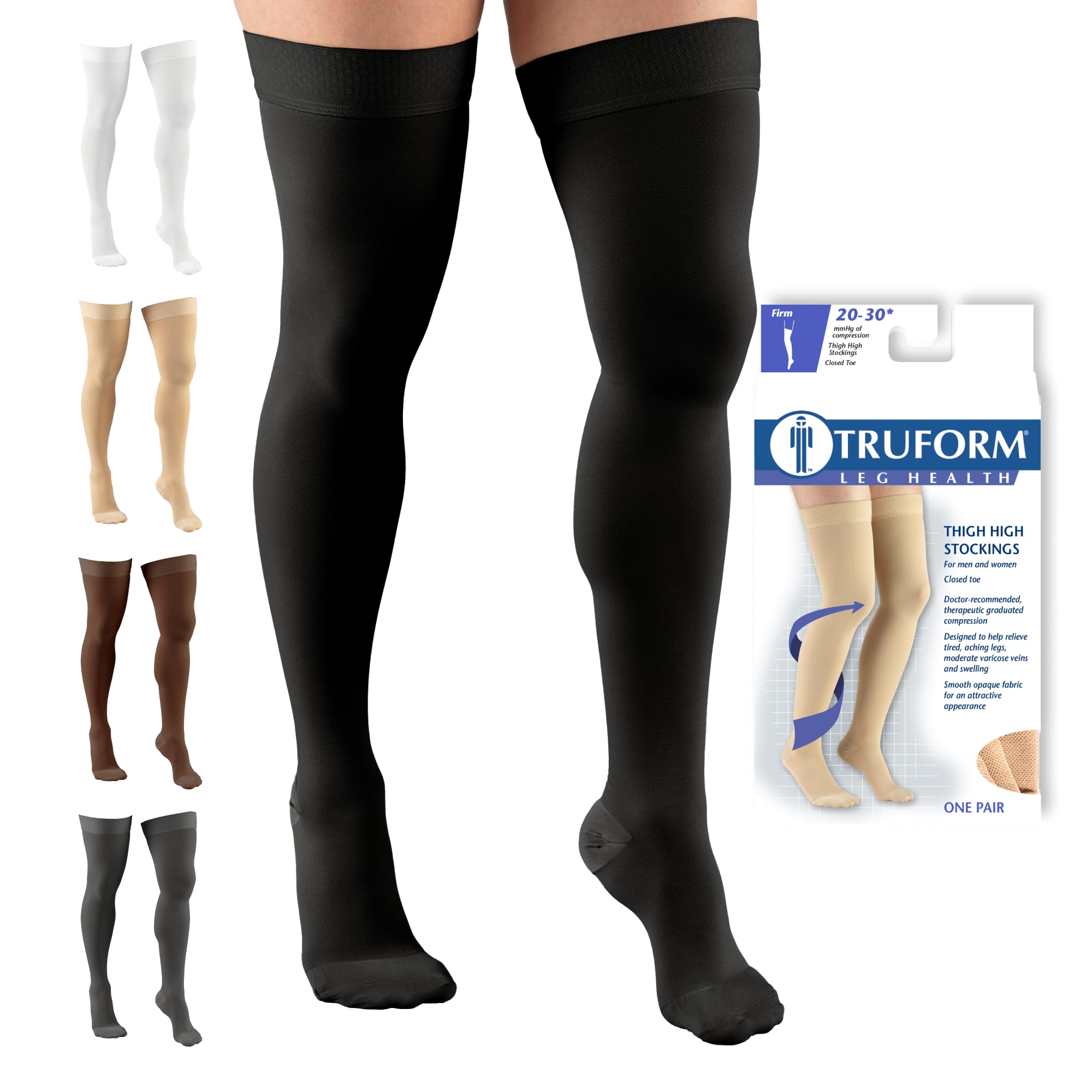 Truform Compression Stockings Large Black 20-30mm Thigh Closed Toe Read more